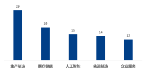 ? 行業(yè)集中度高,前5大行業(yè)占總量的比值達89%。其中生產(chǎn)制造29家,醫(yī)療健康19家,人功能15家,先進制造14家,企業(yè)服務12家。